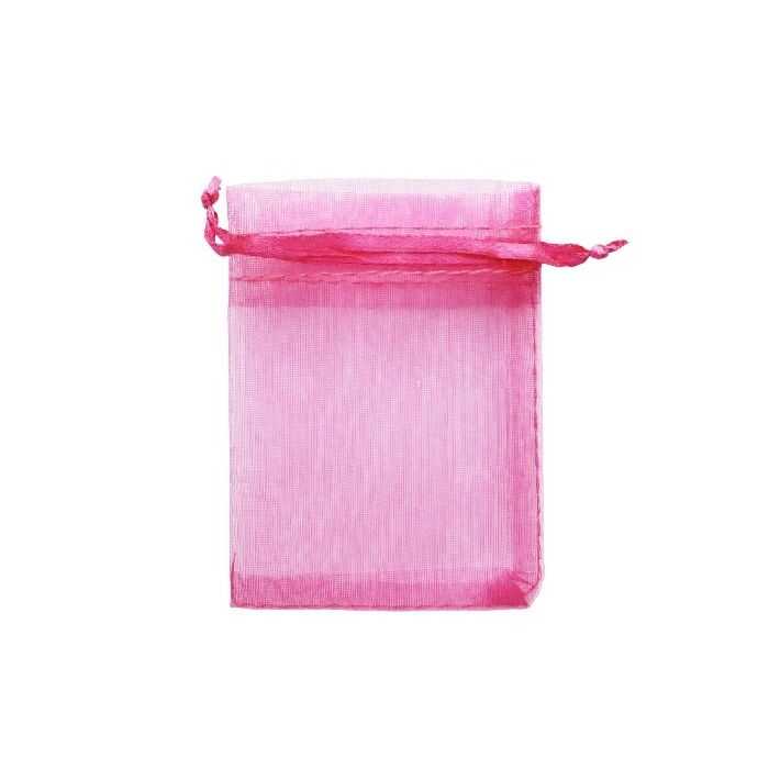 Kleine organzazak in de kleur fuchsia. Het zakje heeft een afmeting van 7 x 9 cm. Eén verpakking bevat 12 organzazakjes.