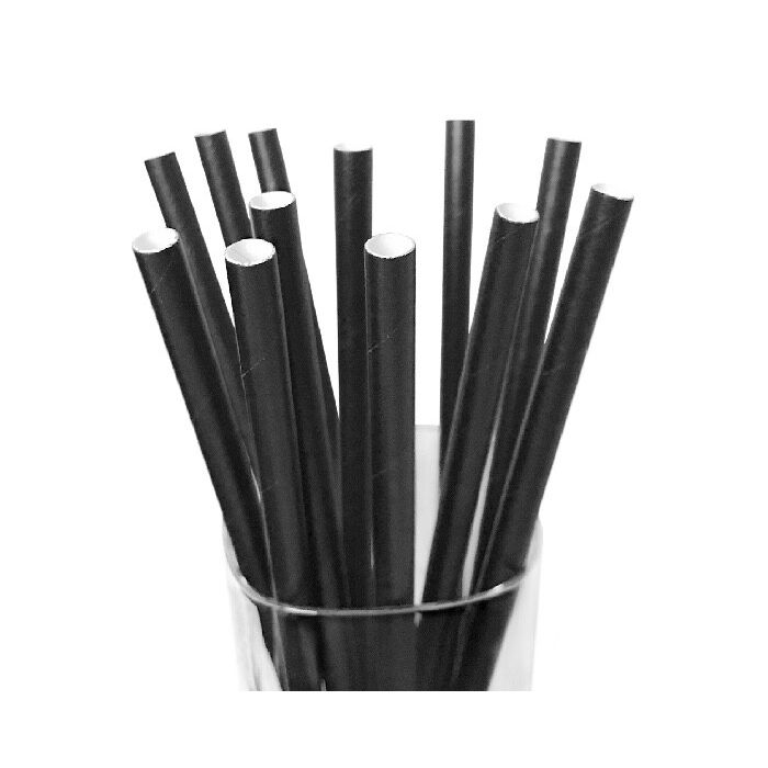 Set van 20 papieren rietjes in zwarte kleur. Te combineren met de papieren bekertjes. De rietjes zijn 19,5 cm lang en hebben een diameter van 0,5 cm.