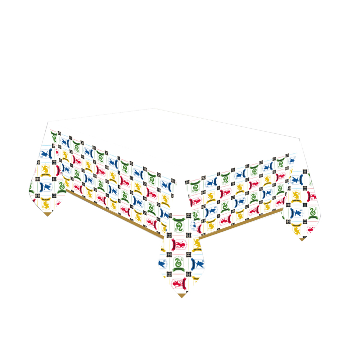 Vier je Harry Potter verjaardag met deze kleurrijke papieren tafelkleed. De tafelkleed is 1.8m x 1.2m groot, dus past over bijna elke tafel en is ontworpen in de typische Harry Potter kleuren. De bovenkant is effen wit gehouden, terwijl de individuele wapenschilden van de Hogwarts-huizen aan de zijkanten worden getoond.