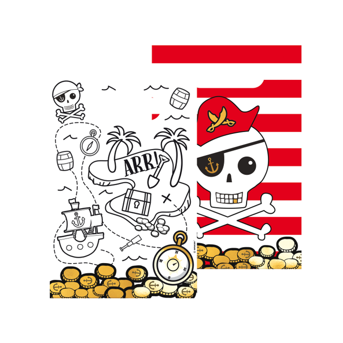 Geef je een Piratenfeestje? Dan zijn deze piraten zakjes de perfecte traktatie om uit te delen op het feestje of op school. De zakjes zijn gemaakt van papier en zijn aan beide zijden bedrukt. Elke verpakking bevat 8 zakjes met een afmeting van 16 (b) x 23 (h) cm. Combineer de zakjes met andere artikelen uit onze 'Pirates Map' serie.