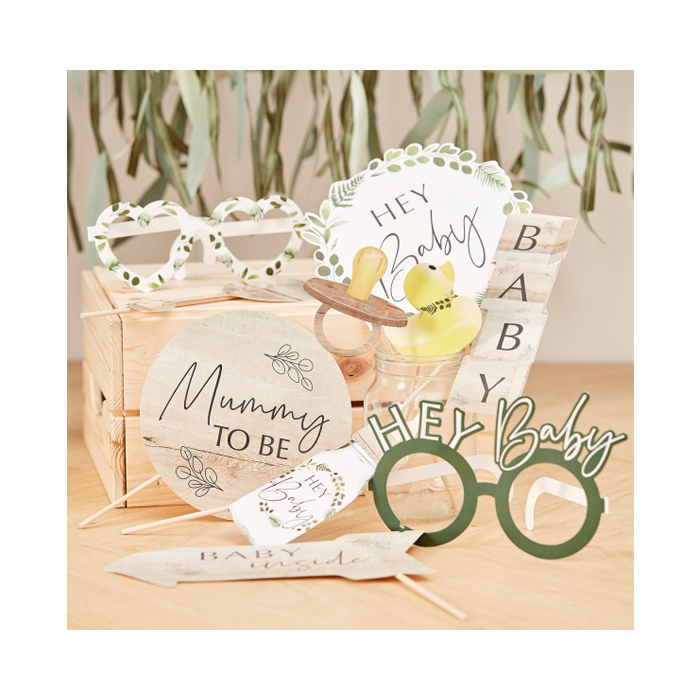 Geniet met al je vrienden en familie met deze prachtige botanische photobooth props voor babyshowers van Ginger Ray. Combineer met een van onze backdrops voor een geweldige DIY photobooth. Ons Botanical Baby-assortiment is gemaakt van natuurlijke materialen zonder schadelijke afwerkingen voor de milieubewuste mummie in spe. Bekijk de rest van het assortiment om een prachtige eco babyshower te creëren!