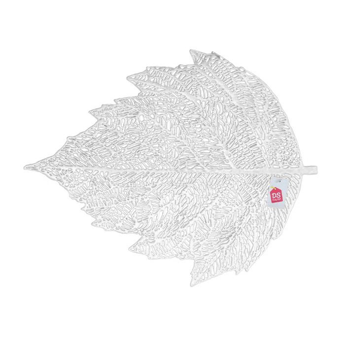 Deze decoratieve en unieke placemat in de vorm van een blad is een prachtige toevoeging aan een diner. Het unieke en moderne design in combinatie met de zilveren kleur geeft deze placemat een luxe uitstraling. De placemat blad van pvc heeft een afmeting van 46x37,5cm (lxb). Je kunt deze leuke placemats combineren met allerlei kleuren servies en zeker bij een neutralere kleur servies zorgt de placemat van pvc voor vrolijkheid op tafel.