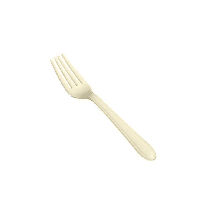 Plastic creme kleurige budget vorken, verpakt per 50 stuks.
