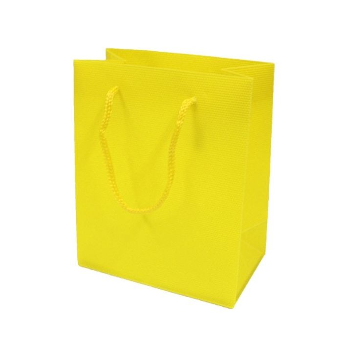 Plastic cadeautas maat S in het geel. De afmeting van een tasje is 14 x 11,5 x 6,5 cm. Een verpakking bevat 12 tasjes.