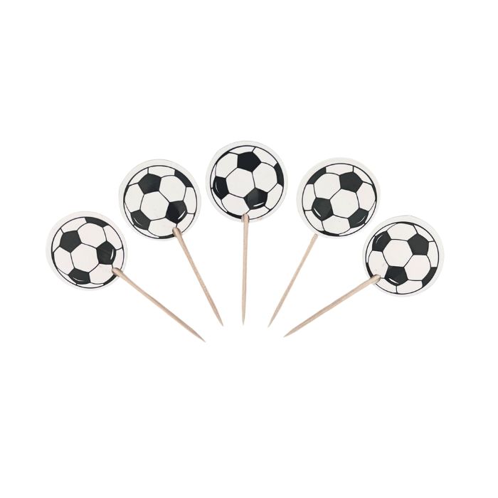 Deze voetbal prikkers zijn perfect om je hapjes en/of cupcakes mee te versieren tijdens een voetbalwedstrijd of kinderfeestje met voetbalthema. Elke prikker heeft een hoogte van ca. 8cm en is verpakt per 12 stuks.