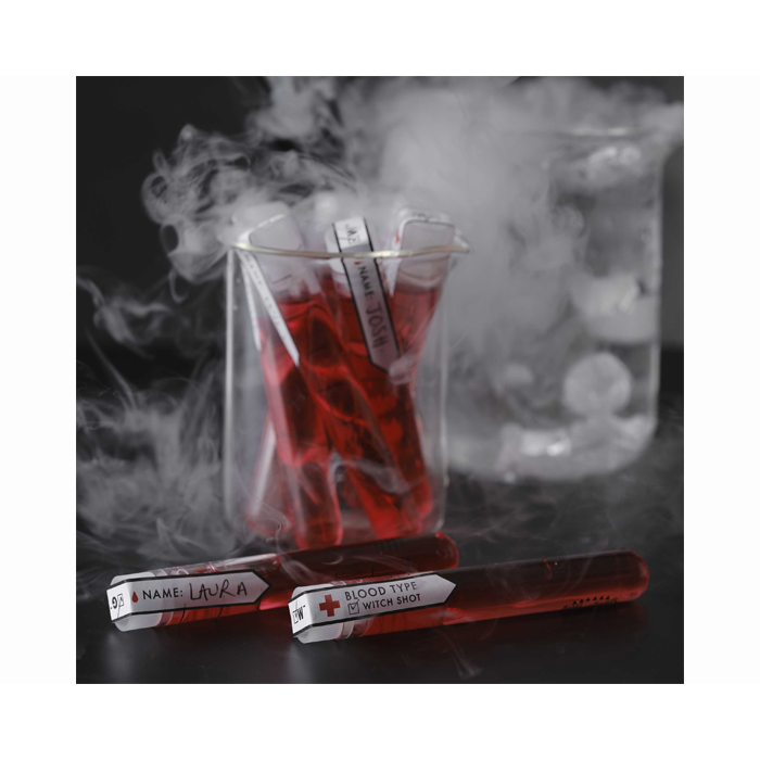 Verras de gasten op je Halloweenfeest met deze leuke reageerbuis shotglaasjes. Personaliseer elk shotglas met leuke stickers. Je gasten kunnen kiezen uit een vampier-, heks- of zombiebloedgroep! Elke verpakking bevat 10 reageerbuis shotglazen met een afmeting van 10x1,6cm.