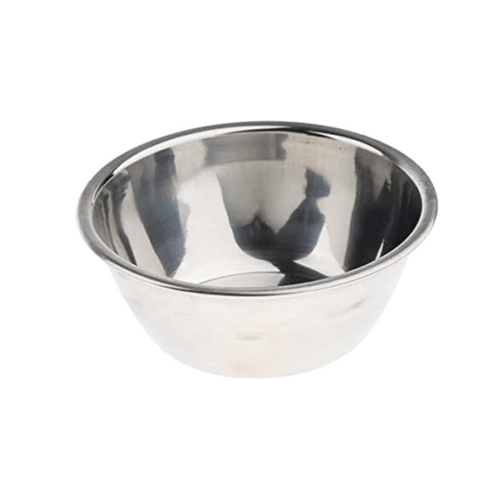 Beslagkom gemaakt van roestvrij staal. De kom heeft een doorsnede van 26 cm.