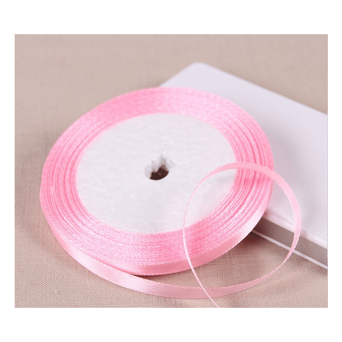 Satijnlint in de kleur roze van 6mm breed op een rol van 22,8m.
