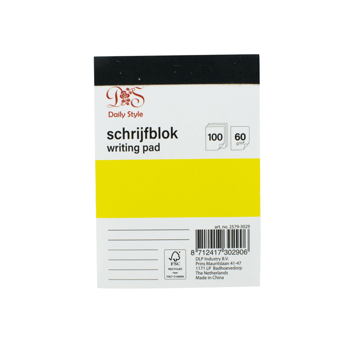 Een schrijfblok in A7-formaat met 100 gelinieerde pagina's van 60g/m².
