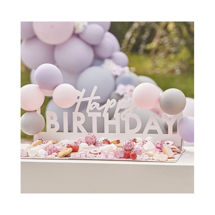 Perfect om te vullen met je favoriete traktaties of feestviering! Combineer dit serveerbord met een spectaculaire ballonenboog om die extra wow-factor te creëren. Elk pakket bevat: 1 x 'Happy Birthday' serveerplank met een afmeting van 56cm (H) x 63cm (B), 20 lijmpunten en 2 ondersteuningspunten voor een eenvoudige montage. Zowel het product als de verpakkingen zijn recyclebaar en FSC-gecertificeerd.
