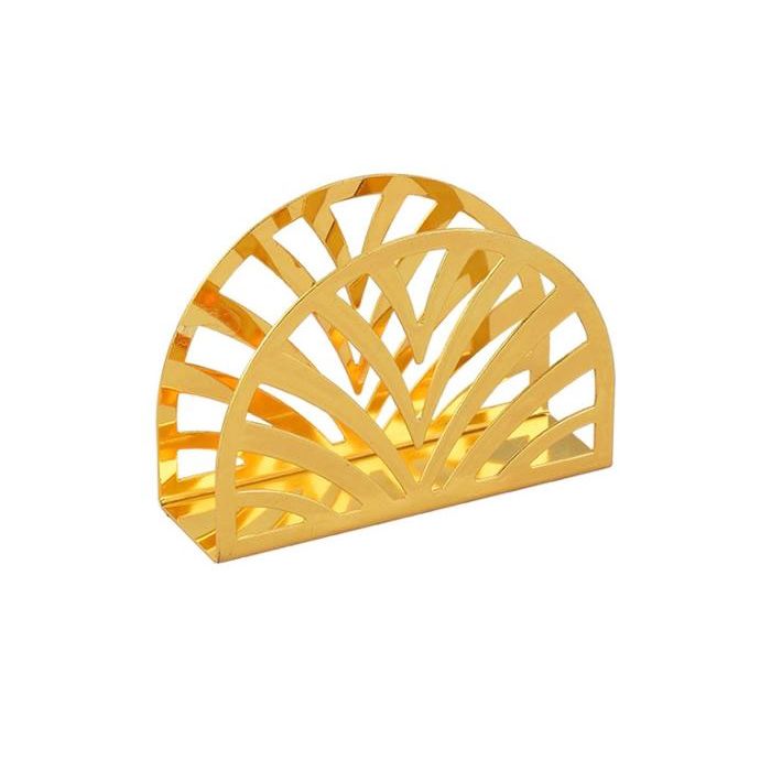 Met deze gouden servethouder geef jij je servetten een feestelijk tintje. De metalen houder zorgt ervoor dat de servetten netjes bij elkaar blijven en makkelijk te pakken zijn. De houder heeft een afmeting van 13x4x9cm.