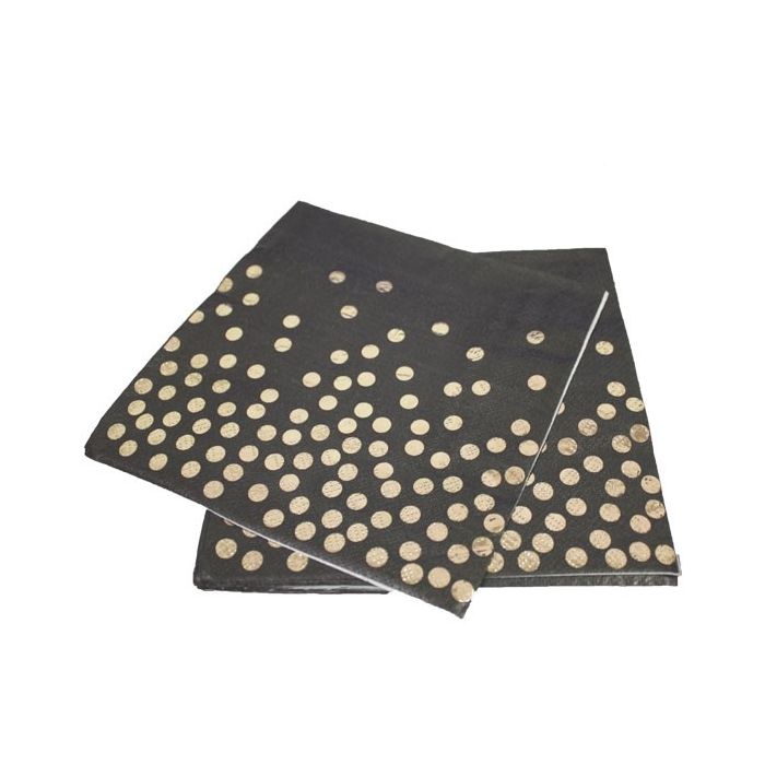 Servetten Dots Zwart/Goud (20st)