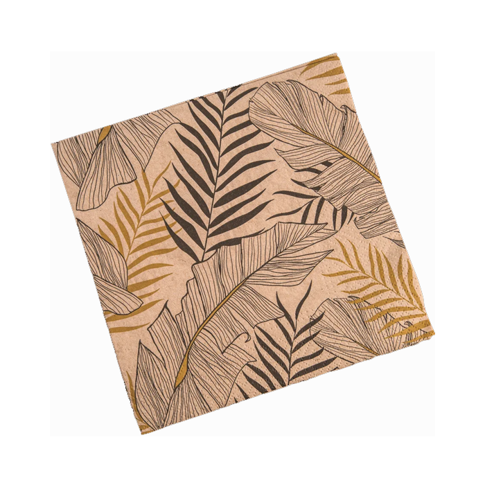 3-laagse servetten gemaakt van recycled papier. De servetten zijn bedrukt met exotische bladeren. Een verpakking bevat 20 servetten.