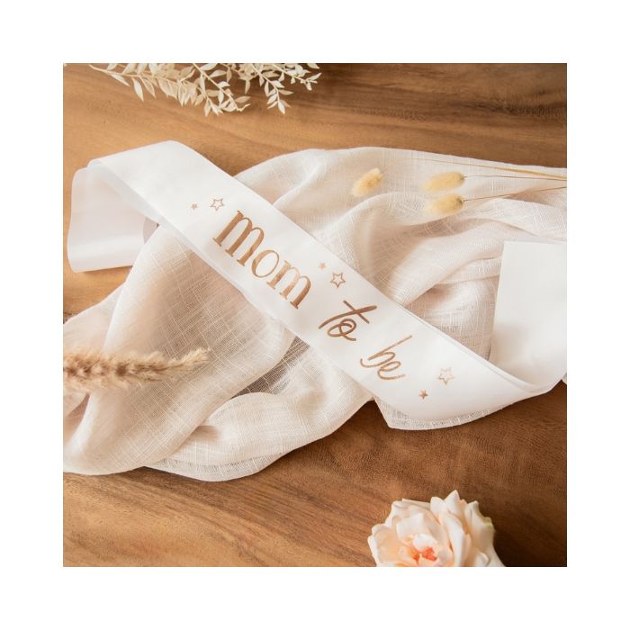Met deze sjerp wordt de aanstaande moeder meteen in het zonnetje gezet! Ideaal voor een babyshower. De sjerp kan ook goed gecombineerd worden met items uit het 'Safari Nude' babyshower thema! Neem dus snel een kijkje bij dit thema.