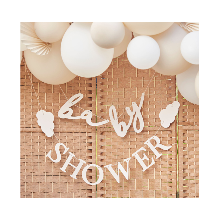 Breng een stijlvolle sfeer aan je babyshower decor met deze prachtige wolken slinger van Ginger Ray. Dit is een verfijnde en eigentijdse slinger in taupe en crème, de perfecte slinger om een neutrale babyshower te versieren.