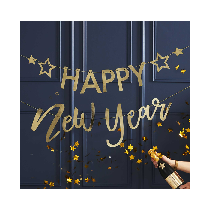 Luid het nieuwe jaar in met deze leuke gouden Happy New Year slinger van Ginger Ray.