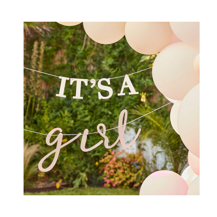Versier je babyshower of gender reveal feestje met deze mooie 'It's A Girl' slinger van Ginger Ray. Elke verpakking bevat 1 x 'It's A Girl' slinger van 2 x 1,5 meter.
