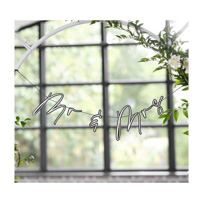 Kies voor deze moderne en stijlvolle Mr & Mrs slinger van Gibnger Ray in de kleuren zwart en wit. Je kunt hem ook aanpassen naar Mr & Mr of Mrs & Mrs! Deze aanpasbare Mr en Mrs Vlaggenlijn is 7 cm (H) x 200 cm (B) en wordt geleverd met 2 x M-letters, 2 x R-letters, 2 x S-letters en 1 x &-symbool met 2m zwart jutetouw voor eenvoudige montage.