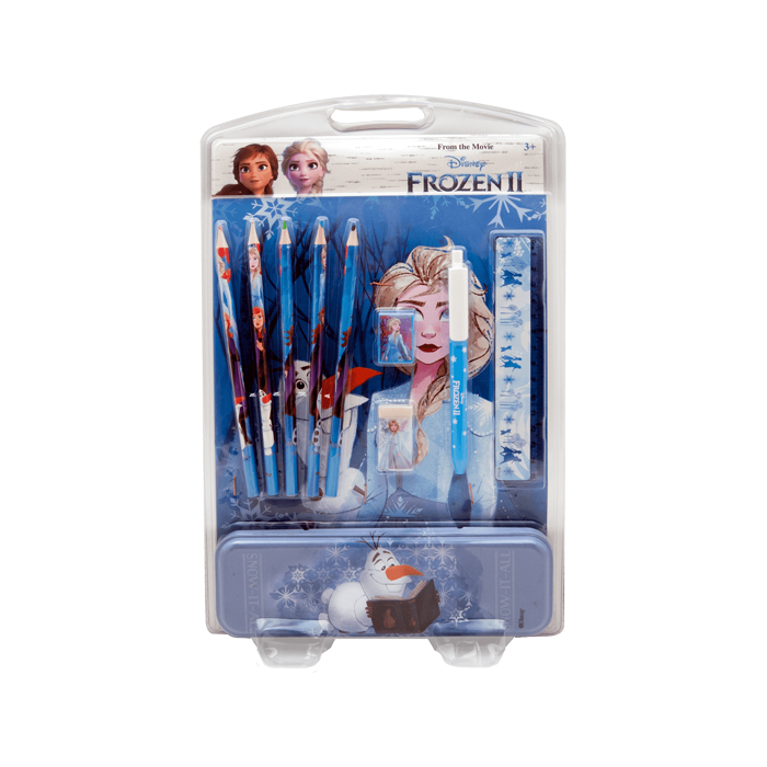 Hou jij ook zo van Frozen? Dit leuke setje is erg handig om te gebruiken op school. De stationery set bestaat uit vijf potloden, een puntenslijper, een gum, een balpen, een liniaal en een pennendoos.