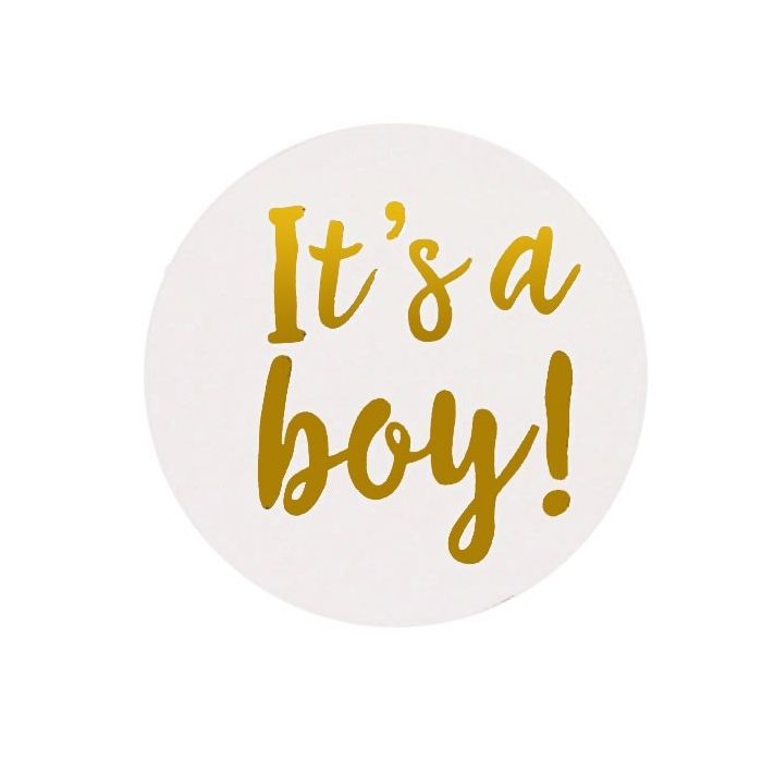 Kleine ronde stickers met gouden tekst "It's a boy!". Leuk om op een bedankje te plakken! De stickers hebben een doorsnede van 3 cm. In een verpakking zitten 24 stickers.