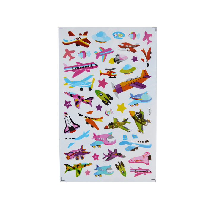 Stickervel met kleurrijke vliegtuigen. Leuk voor op kaarten, cadeautjes of knutselwerkjes. Niet geschikt voor kinderen jonger dan 3 jaar.