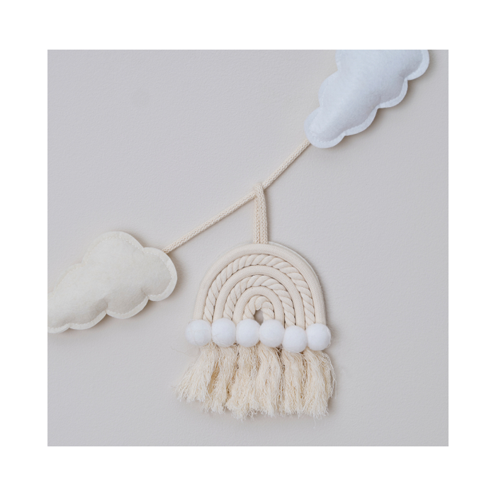 Creëer een stijlvolle kinderkamer met deze prachtige stoffen babyslinger van Ginger Ray. Deze zachte wolken- en macramé regenboogslinger is een schattige toevoeging aan je kinderkamerinrichting en is het perfecte cadeau voor de mama in spé. Elke verpakking bevat 1 stoffen babyslinger van 2 meter lang.