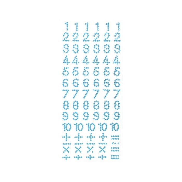 Strass cijfers stickervel in diverse kleuren verkrijgbaar. Eén stickervel bevat 84 strass cijfers. De letters hebben een afmeting van ongeveer 1 x 1,1 cm.