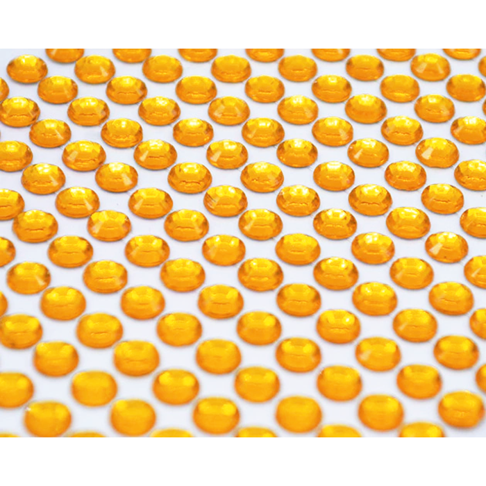 Glanzende strass steentjes stickers in de kleur goud. De steentjes hebben een diameter van 0,5cm. Er zitten 330 strass steentjes op een stickervel.