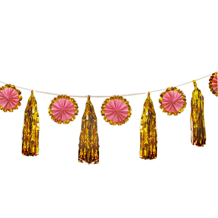 Leuke DIY slinger met tassels en slingers in het goud en roze. De set bestaat uit: