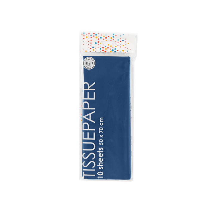 Donkerblauwe tissue papier voor het opvullen van bijv. een cadeautje. Tissue papier zorgt voor een vrolijke opvulling van uw cadeaus. In één pak zitten 5 vellen. Een vel tissue papier is elk 50 x 70 cm.