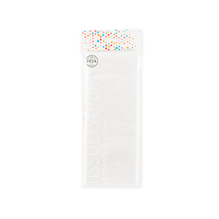 Wit tissue papier voor het opvullen van bijv. een cadeautje. Tissue papier zorgt voor een vrolijke opvulling van uw cadeaus. In één pak zitten 10 vellen. Een vel tissue papier is elk 50 x 70 cm. De tissuepapier is watervast.