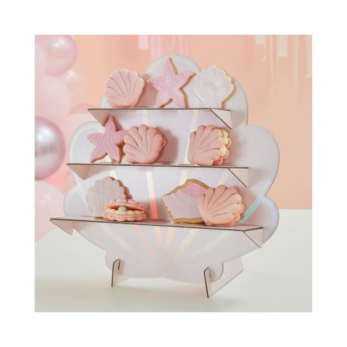 Laat je gasten genieten van deze betoverende traktatiestandaard in de vorm van een schelp vol iriserende glans, het is te verleidelijk om te weerstaan! Plaats dit als het middelpunt op je tafel met heerlijke thematische traktaties - perfect voor het creëren van geweldige feesten.