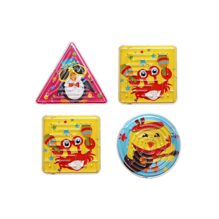 Kleine uitdeelspeelgoed doolhof. Het doel van dit spelletje is om het balletje door het doolhof in het midden te krijgen. Leuk om uit te delen op een kinderfeestje.