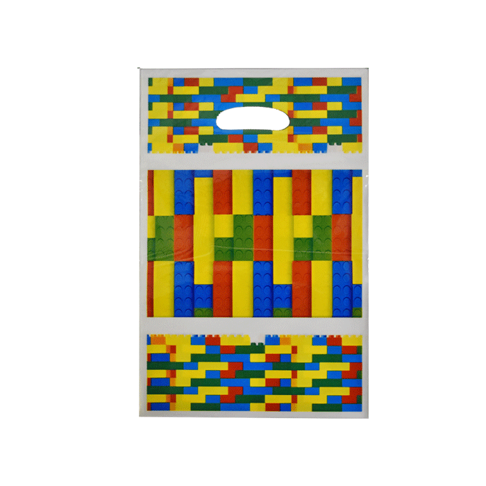 Plastic uitdeelzakjes met gekleurde legoblokjes. Perfect voor een kinderfeestje met Lego thema. De zakjes zijn 16,5 x 25 cm groot en verpakt per 12 stuks.