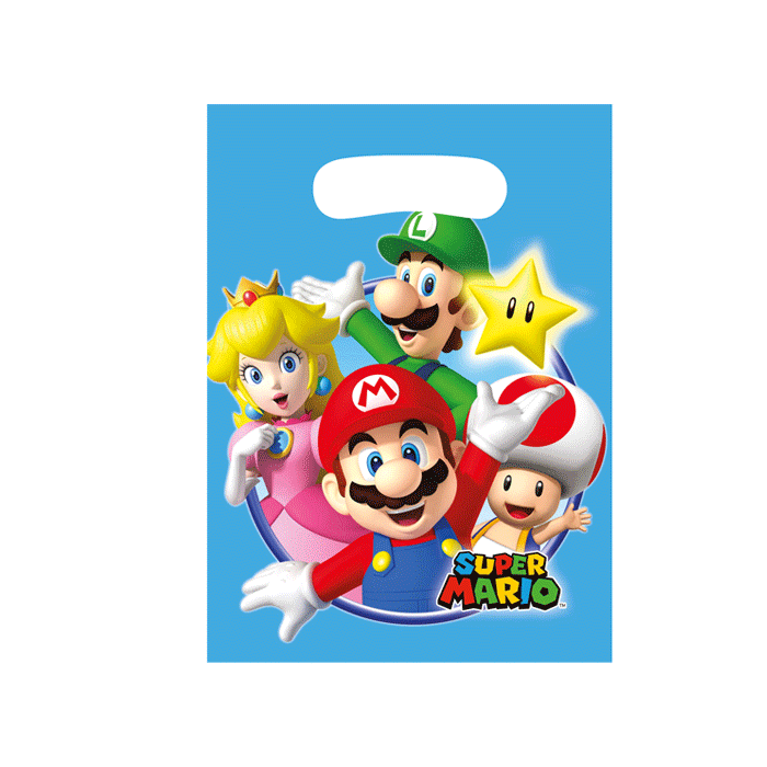 Stoere uitdeelzakjes van Super Mario. Eén verpakking bevat 8 uitdeelzakjes.