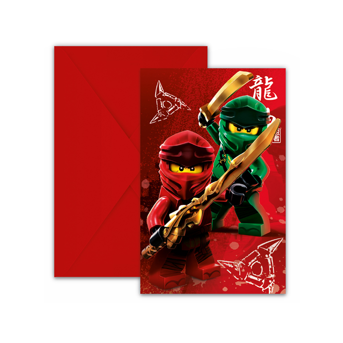 Stoere Lego Ninjago uitnodigingen met enveloppen. Elke verpakking bevat 6 uitnodigingen en 6 enveloppen.