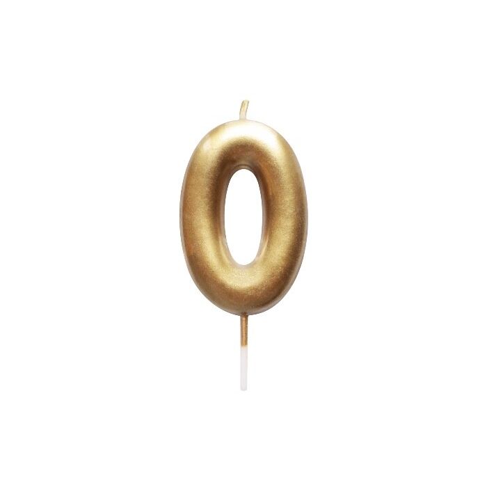Versier de taart met deze feestelijke gouden cijfer 0 verjaardagskaars. Combineer deze kaars met een andere cijferkaars. De kaars is ongeveer 8 cm hoog (incl. prikker).