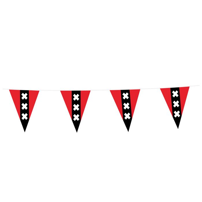 Deze vlaggenlijn is geheel in het teken van Amsterdam. Heb je een feestje in Amsterdam of ga je een Ajax voetbal feestje vieren? Dan is deze vlaggenlijn daar perfect voor. De vlaggenlijn is circa 10 meter lang.
