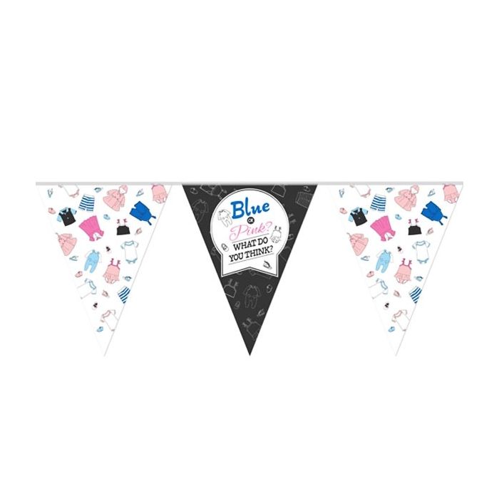 Vlaggenlijn Blue or Pink? Maak je gender reveal party feestelijk compleet met deze leuke vlaggenlijn! De vlaggenlijn is 10 meter lang.