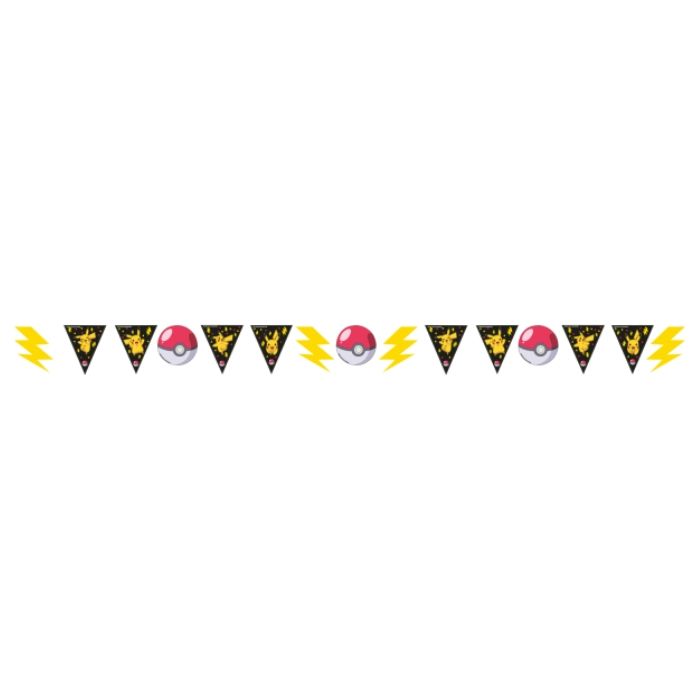 Ben je van plan om een Pokémon-feestje te organiseren? Dan is deze slinger een absolute must-have! Deze verpakking bevat één slinger met vlaggen gemaakt van papier in de vorm van een Pokéball of een bliksemschicht. Daarnaast zijn er ook driehoekige vlaggen met Pikachu erop. De vlaggen zijn elk 17,5 cm hoog en de slinger heeft een lengte van ongeveer 3,3 meter.