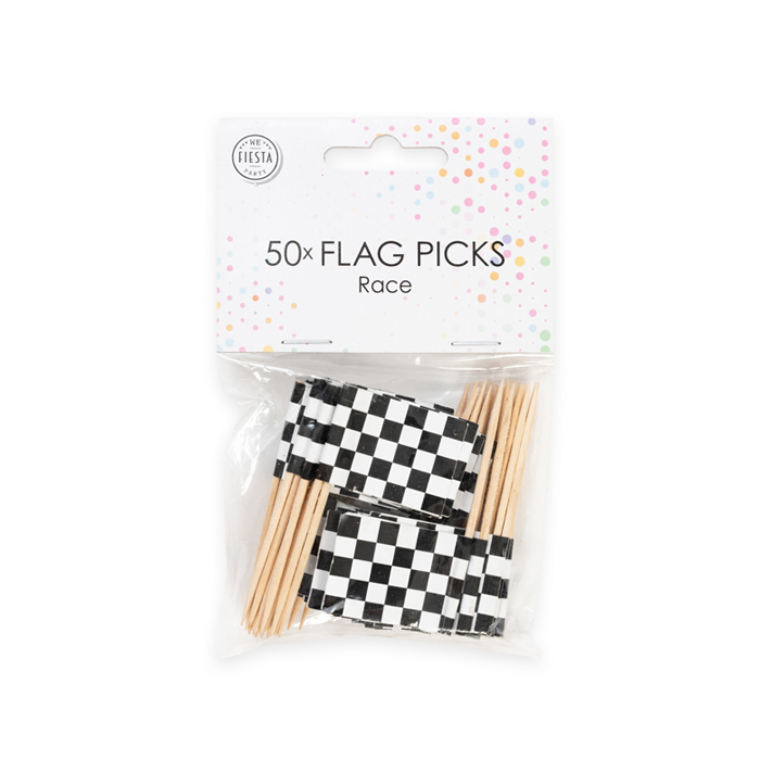 Leuke race vlagprikkers om tijdens een wedstrijd je borrelhapjes te versieren. Een verpakking bevat 50 vlagprikkers.