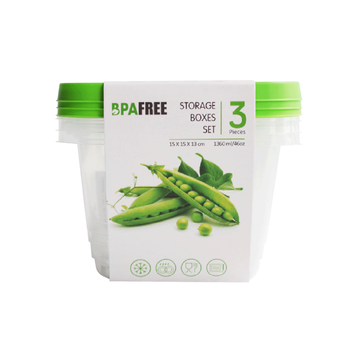 Handige voorraaddozen om bijvoorbeeld etenswaren in te bewaren. Eén set bevat 3 doosjes met elk een inhoud van 1360 ml.