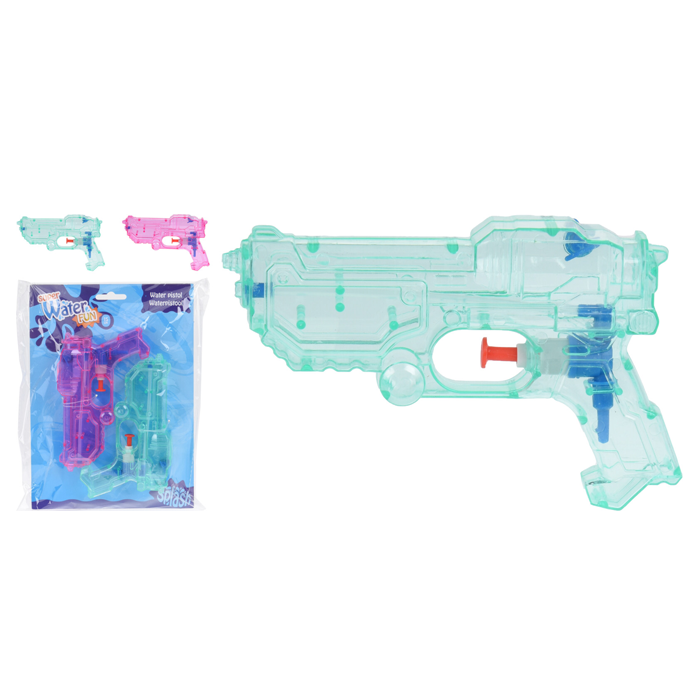 Set van 2 kleine waterpistooltjes van 15cm. Leuk als uitdeelcadeautje voor je verjaardag of voor in de grabbelton. De waterpistooltjes zijn er in verschillende kleuren en worden door elkaar geleverd. Geschikt vanaf 3 jaar.