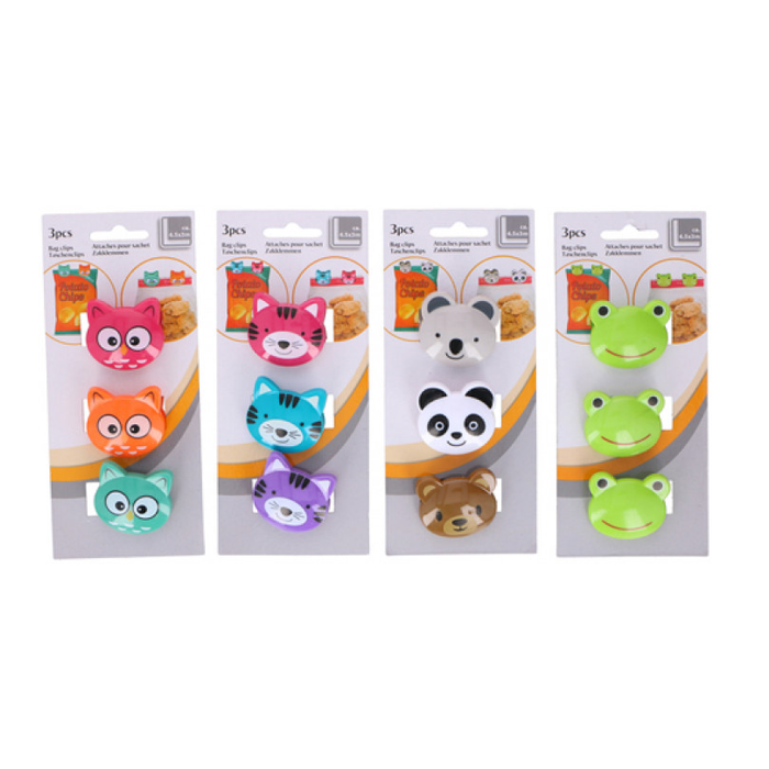 Dieren zakklemmen om je verpakkingen mee dicht te houden. Een verpakking bevat drie zakklemmen. Let op: je ontvangt een willekeurige variant.