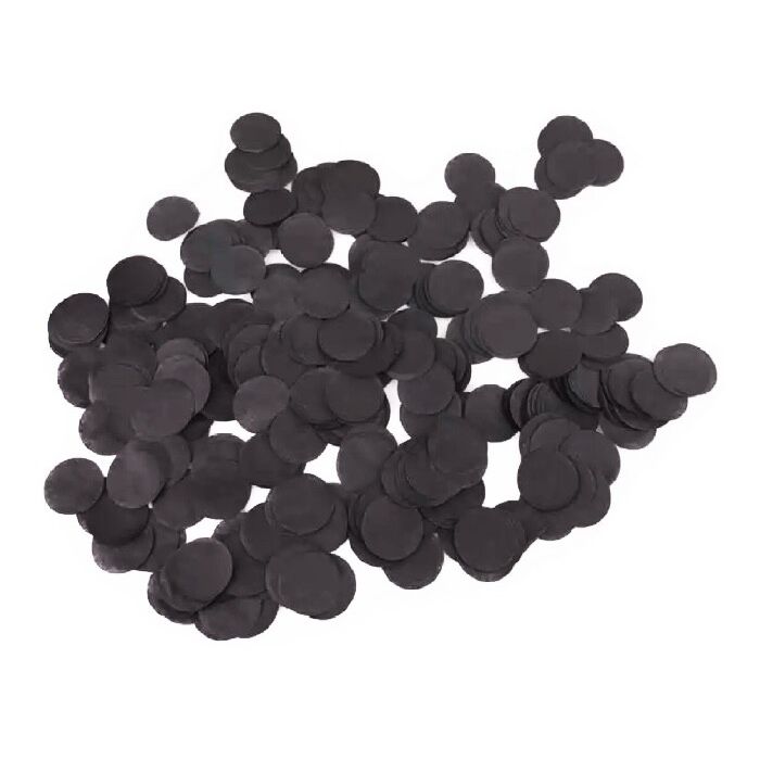 Feestelijke papieren confetti in het zwart. Deze confetti is perfect voor gebruik als tafeldecoratie en/of om in een transparante ballon te doen bij speciale gelegenheden zoals verjaardagen, bruiloften, kinderfeestjes en babyshowers! De confetti rondjes hebben een doorsnede van 2 centimeter. Een verpakking bevat ongeveer 40 gram confetti.