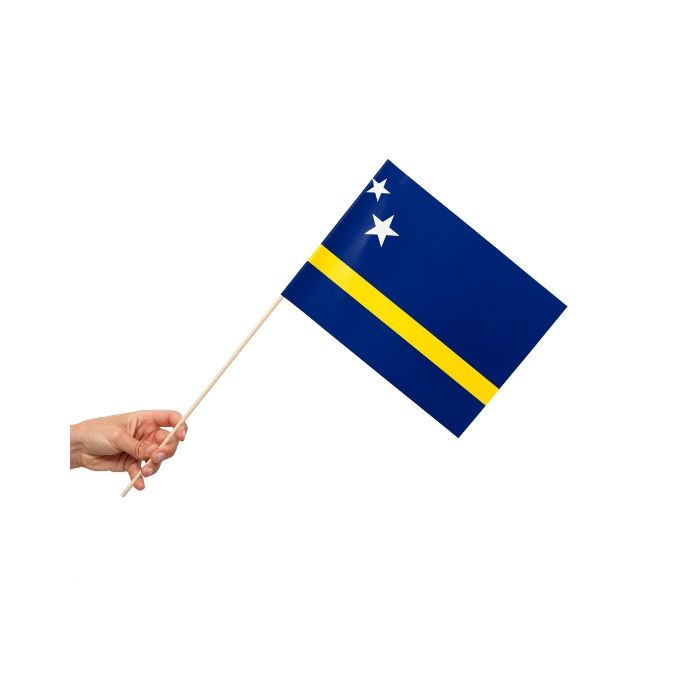 Een set van 10 papieren zwaaivlaggetjes op stokjes met de Curaçaose vlag. Elke vlag meet 30 x 20 cm. Deze vrolijke en kleurrijke zwaaivlaggetjes zijn perfect om wat extra feestvreugde toe te voegen aan elke gelegenheid! Of je nu een Curaçaose themafeestje geeft of gewoon wat meer flair wilt toevoegen aan een speciale viering, deze vlaggetjes zullen zeker de sfeer verhogen. De afmetingen van 30 x 20 cm maken ze ideaal om vast te houden en te zwaaien, zodat je trots de kleuren van Curaçao kunt laten wapperen. Laat je creativiteit de vrije loop en geniet van het plezier dat deze vlaggetjes met zich meebrengen!